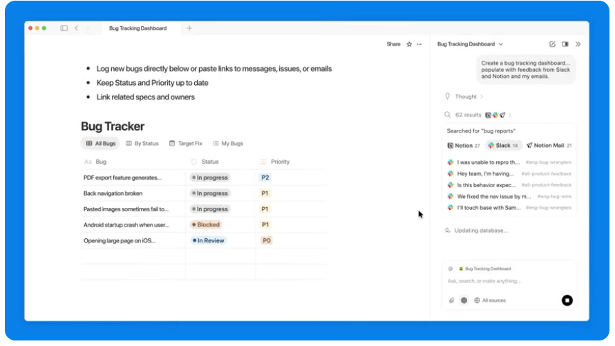 2. Smarter Workflows in Notion - The agent can draft and edit email campaigns, consolidate multi-platform feedback into reports, and transform meeting notes into polished proposals, acting as a fully customizable digital coworker.